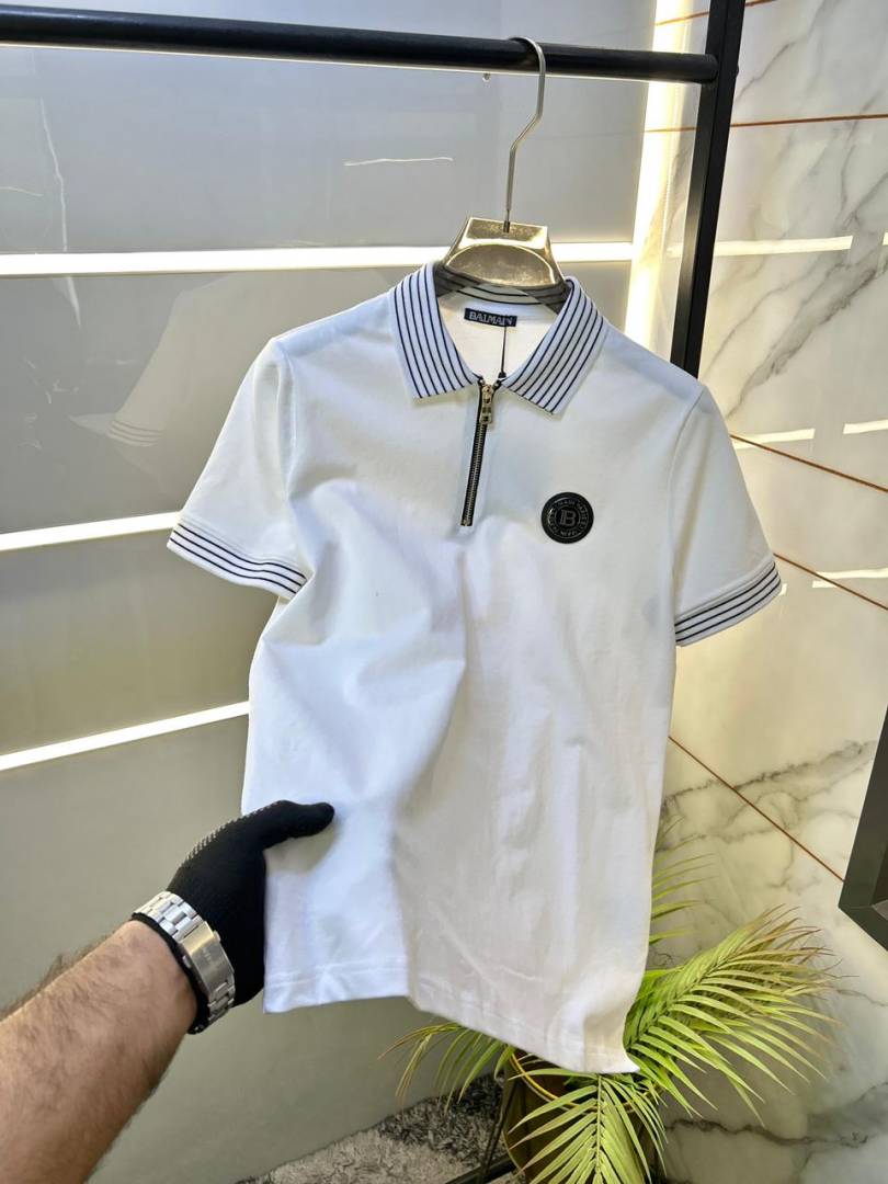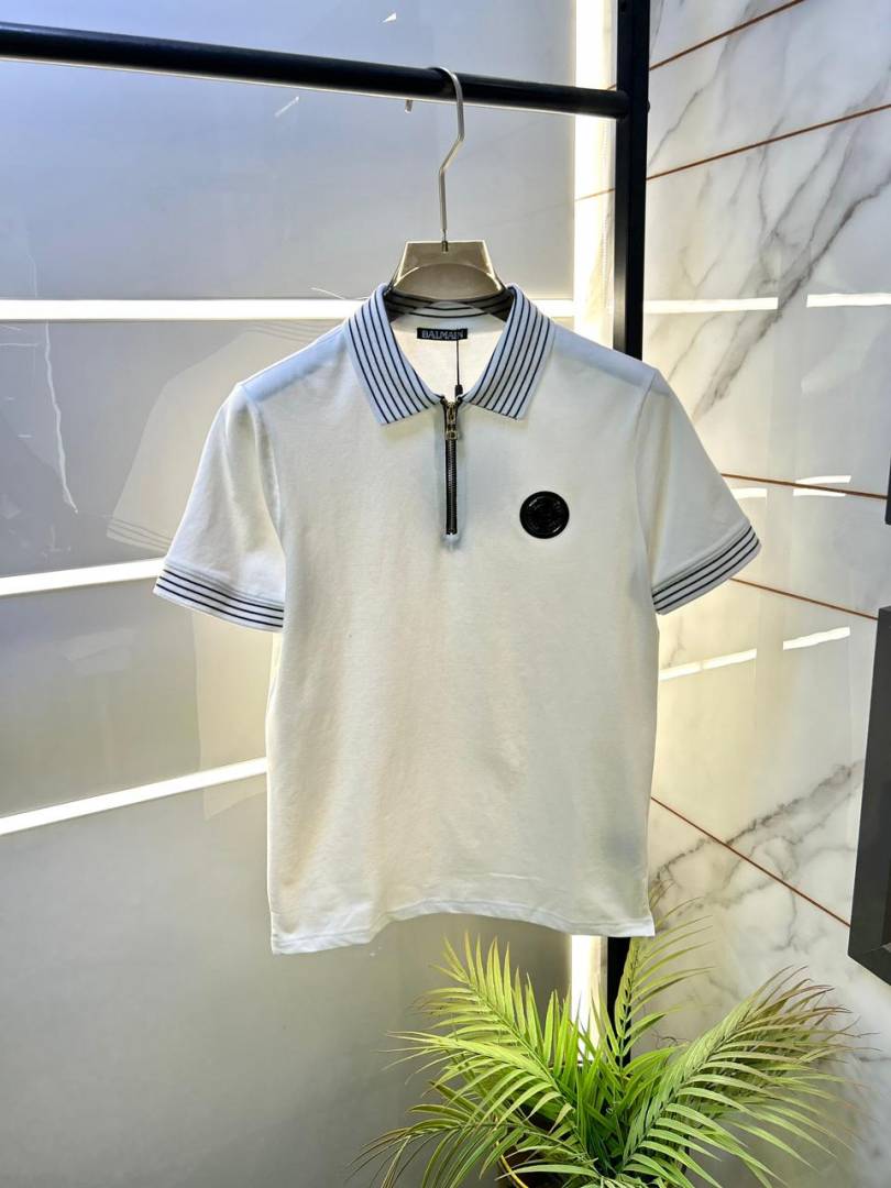 Balmai n Paris White Imported Premium Polo Collar Neck T-shirt F3506-W2